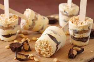 vėl riešutų, vėl ledų, žemės riešutų sviestas (šaukštas), smulkintų sausainių, ledų, ir ant viršaus riešutų…. ir t.t.
