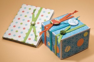 O gal turite dovanų vyniojimo popieriaus? Taip pat galite papuošti dėžutes. Apklijuokite dėžutę ir dangtelį su puošniu popieriumi, tvirtindami lipnia juosta ar klijais.