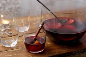 2. Supilame į prikaistuvį vyną (šiuo atveju naudosime sausą raudonąjį stalo vyną), pašildome. Pagardiname apelsino skiltelėmis, pasaldiname cukrumi. Kad prieskoniai labiau atsiskleistų galime viralą laikyti ant silpos kaitros ir 10-20 min., tačiau viralo temperatūra neturi pasiekti 70 °C ir aukštesnės temperatūros – antraip sugadinsime karšto vyno skonį.