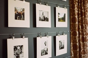 Tai tikriausiai pats paprasčiausias, bet toli gražu ne prasčiausias būdas gražiai apipavidalinti savo nuotraukų atvaizdavimą. Paprasčiausiai paimkite keturias senas lentas (jos gali būti nebūtinai senos, tačiau tokiu atveju jums į pagalbą teks pasitelkti dažus, kad suteiktumėte joms senumo įvaizdį) ir sumontuokite iš jų rėmelį. Jo forma nesvarbi – galite tai nuspręsti pagal savo namų interjerą arba tiesiog skonį. Kai rėmelis bus paruoštas. Jo viduje pritvirtinkite dvi gijas, ant kurių sukabinsite savo nuotraukas. Geriausias efektas bus, jei tam reikalui panaudosite medinius skalbinių segtukus. Prie viso šio dizaino puikiausiai tiks nuotraukos atspausdintos nespalvotai arba blankiomis spalvomis (rudu, pilku atspalviu).