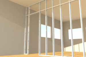 Komunikacijų ir izoliacijos sudėjimas. Pertvaroje pratiesiamos reikiamos komunikacijos ir ant jų sudedamas reikiamo storio izoliacijos sluoksnis. Izoliacija turi laikytis standžiai ir būtinai užpildykite profilių ertmes.