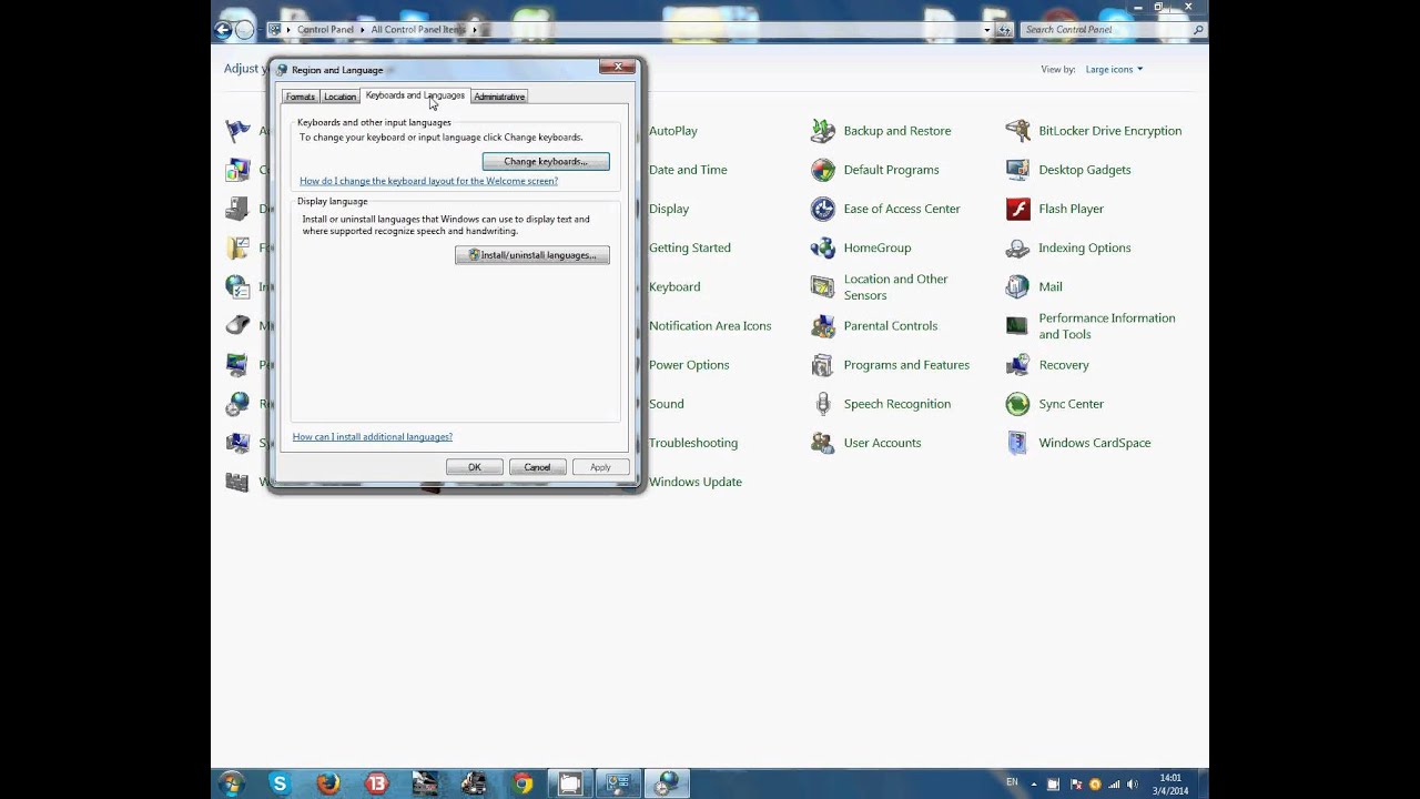 - Eikite į Start >> Control Panel >> Clock, Language and Region >> Region and Language